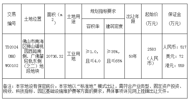 佛山市南海区国有建设用地使用权网上挂牌出让公告