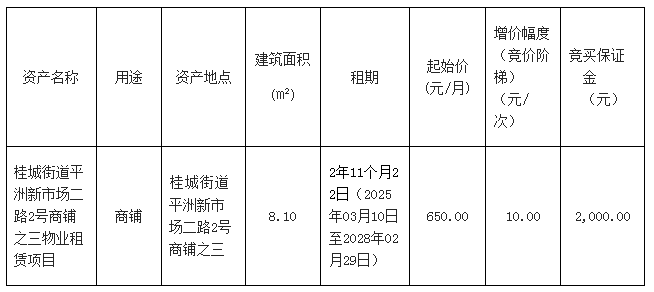 南海桂城街道平洲永安中路3号首层商铺之一物业租赁项目