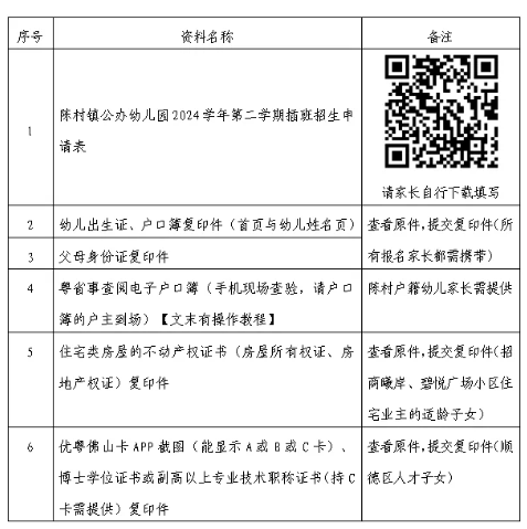 【注意:所有报名家长都应进行网上预约报名且完成所有资料的填报,不接受现场报名。如之前已报名陈村镇公办幼儿园但未被录取的家长报名本次招生或在读陈村镇公办幼儿园的幼儿家长在办理退学手续后报名其他公办幼儿园的,亦需扫二维码进行网上预约报名】