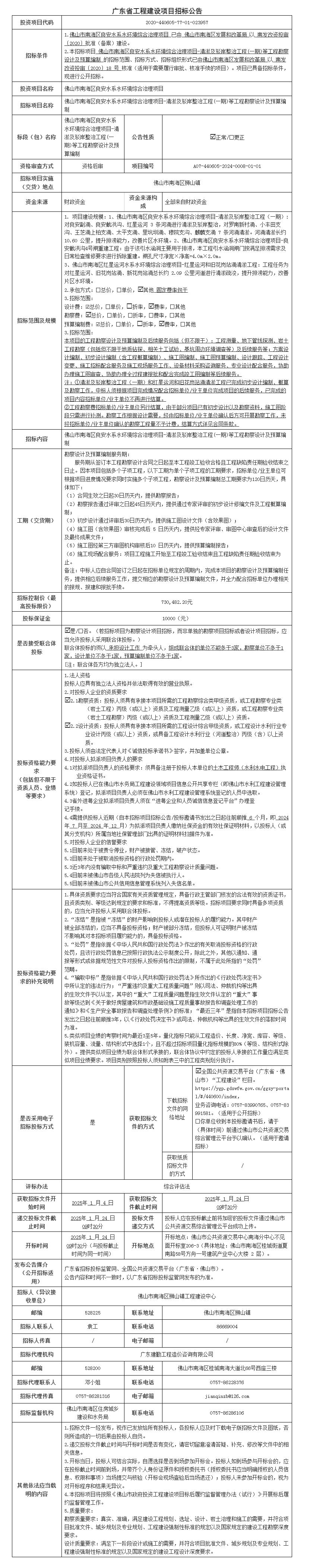 佛山市南海区解放水系水环境综合治理项目-一标段支毛涌整治工程等工程勘察设计及预算编制招标公告