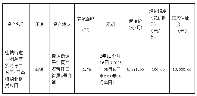 南海桂城街道平洲永安中路3号首层商铺之一物业租赁项目