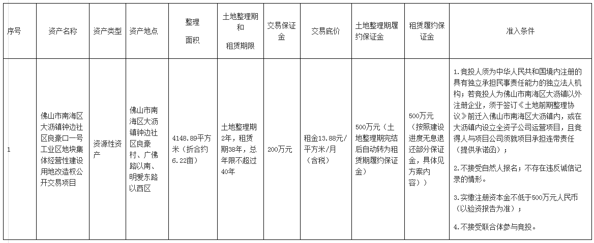 (十三)竞投公告未详细明确的相关事宜,以本交易方案后附的《佛山市南海区大沥镇钟边社区良豪口一号工业区地块集体经营性建设用地改造权公开交易项目入市方案》及其全部附件内容为准,请务必认真通读整份交易方案。