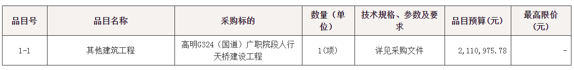 佛山高明G324(国道)广职院段人行天桥建设工程招标公告