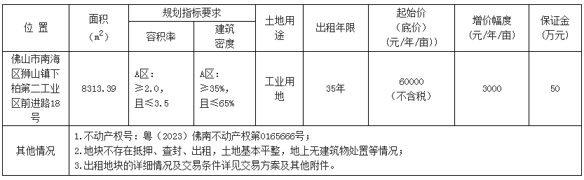 佛山市南海区农村集体经营性建设用地使用权网上挂牌出租公告