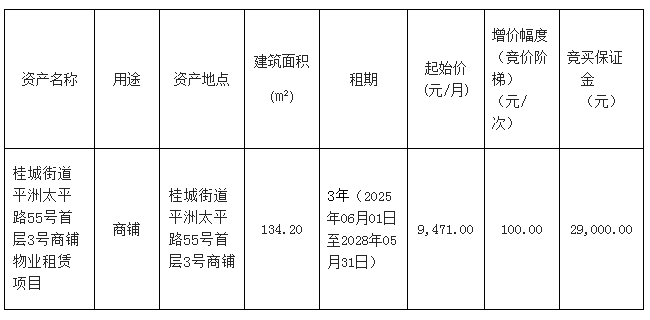 2.交易保证金到账截止时间为2025年1月17日下午5:30,超过截止时间达账则不能参加竞租;