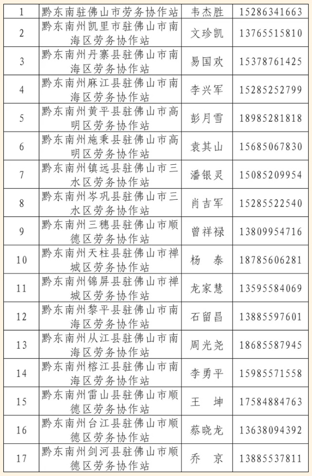 报名方式:通过黔东南州州县两级派驻佛山劳务协作站报名