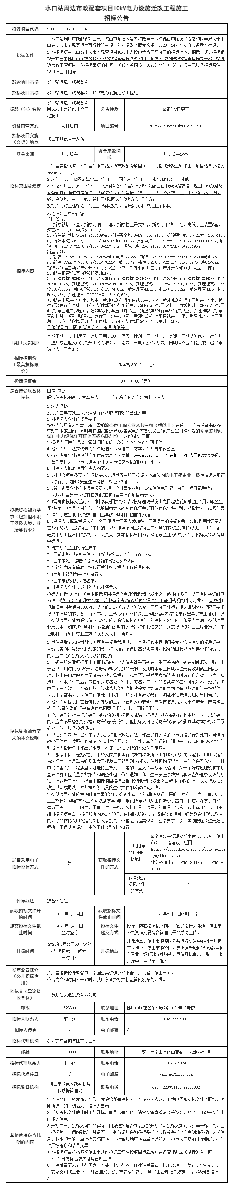 顺德乐从水口站周边市政配套项目10kV电力设施迁改工程施工招标公告