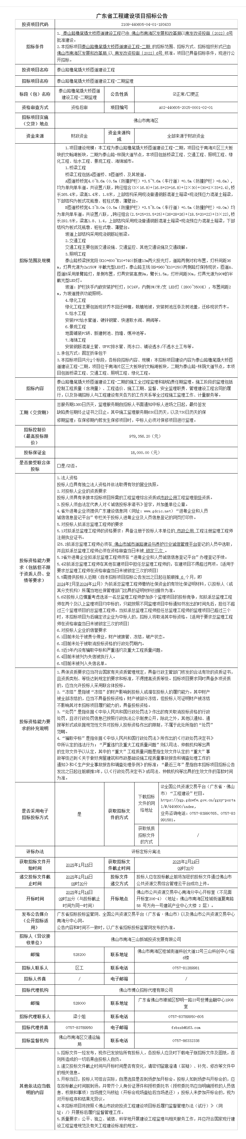 佛山南海泰山路橹尾撬大桥匝道建设工程-二期招标公告