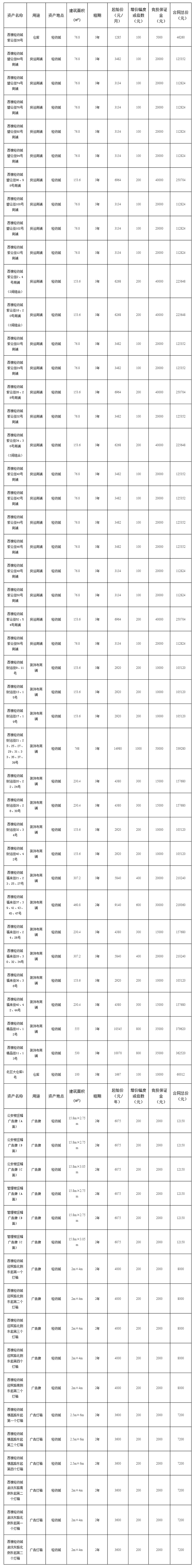 2. 项目信息:西樵轻纺城辖区公有物业共59宗向社会公开竞价招租(详见招租明细表)