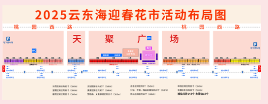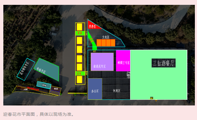 迎春花市设置20个展位,包括兰花区、游乐区、盆栽区、年货区、桃花区、文创区、年桔区等。