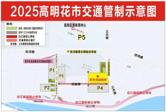 1、创基路(花市活动现场)全路段禁止车辆进入;