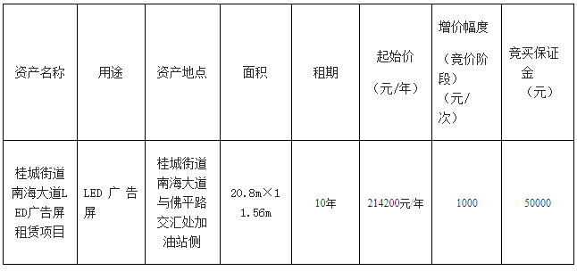 南海桂城街道南海大道LED广告屏租赁项目租赁公告