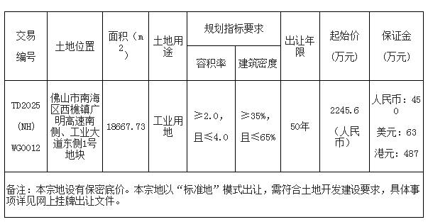 佛山市南海区国有建设用地使用权网上挂牌出让公告