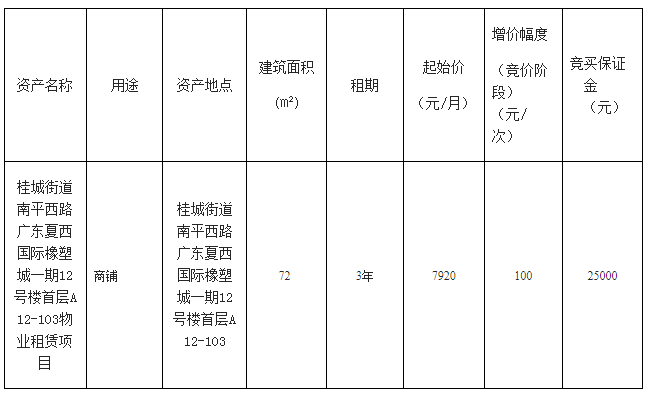 南海桂城街道南平西路广东夏西国际橡塑城一期12号楼首层A12-103物业租赁项目