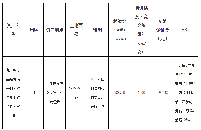 3.竞得人须在签订租赁合同之日起1年内投入不少于人民币200万元资金用于租赁物的装修改造,其中租赁物装修改造内容包括租赁标的物修缮(含地面平整、墙体修复)、消防设施改造投入、用电增容、宿舍装修改造等在内,但承租方购置用于生产的设备设施费用不列入物业改造资金范围内。