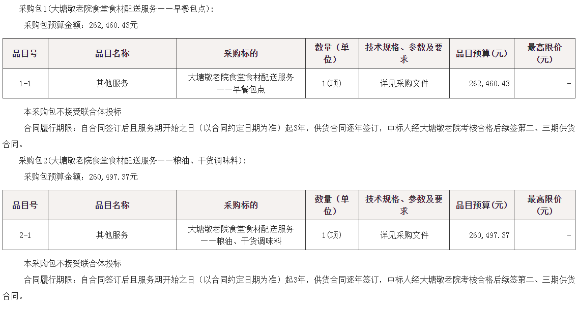 项目名称:大塘敬老院食堂食材配送服务(二次)