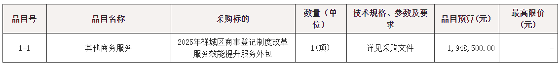 2025年禅城区商事登记制度改革服务效能提升服务外包招标公告