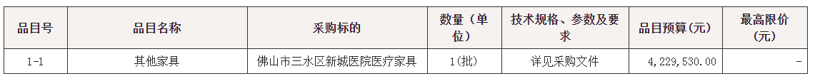佛山市三水区新城医院医疗家具采购项目招标公告