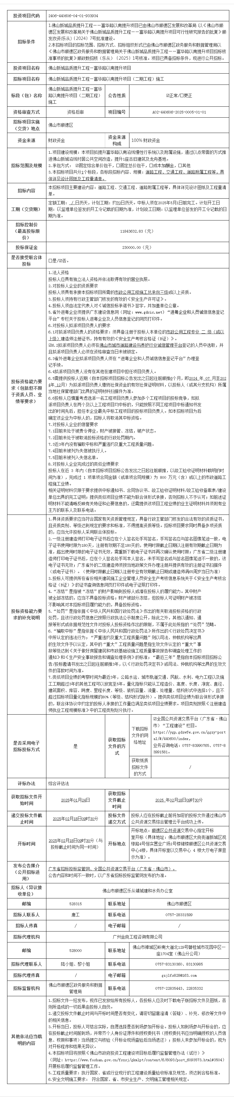 佛山新城品质提升工程——富华路以南提升项目(二期工程)施工招标公告