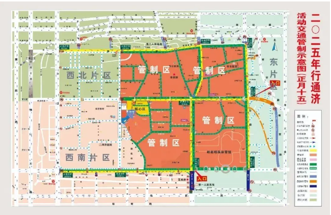 2月12日即元宵节(正月十五)当日行通济线路及备用线路、紧急疏散通道分别为: