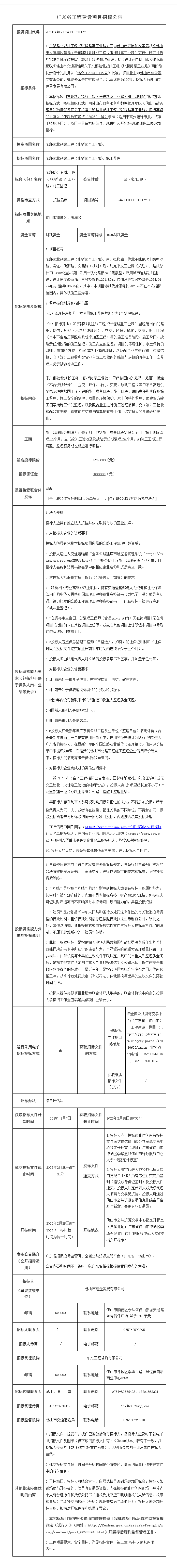 禅城张槎东鄱路北延线工程(张槎路至工业路)施工监理招标公告