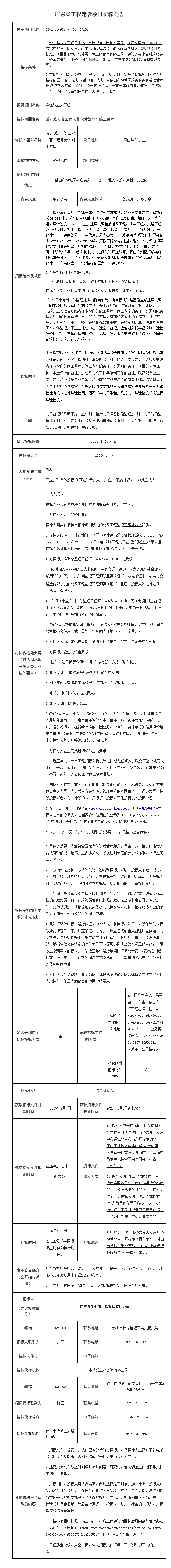 禅城汾江路立交工程(非代建部分)施工监理招标公告