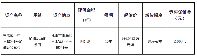 南海里水镇洲村三横路1号加油站经营权招租项目