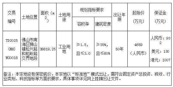 佛山市南海区国有建设用地使用权网上挂牌出让公告