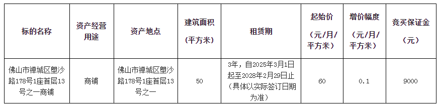 1.招/出租人:佛山市南海区桂城资产经营有限公司