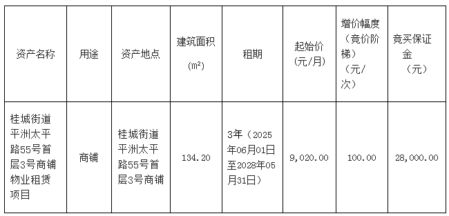 南海桂城街道平洲永安中路3号首层商铺之一物业租赁项目