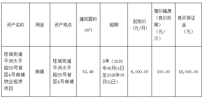 南海桂城街道平洲永安中路3号首层商铺之一物业租赁项目