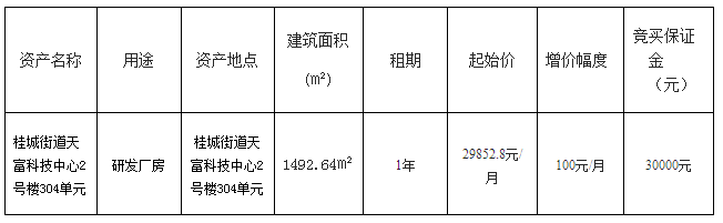 南海桂城街道天富科技中心4号楼301-B单元物业租赁项目