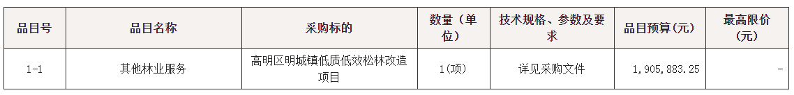 高明区明城镇低质低效松林改造项目采购项目的潜在供应商应在广东省政府采购网https://gdgpo.czt.gd.gov.cn/获取采购文件,并于 2025年03月04日 09时30分 (北京时间)前提交响应文件。
