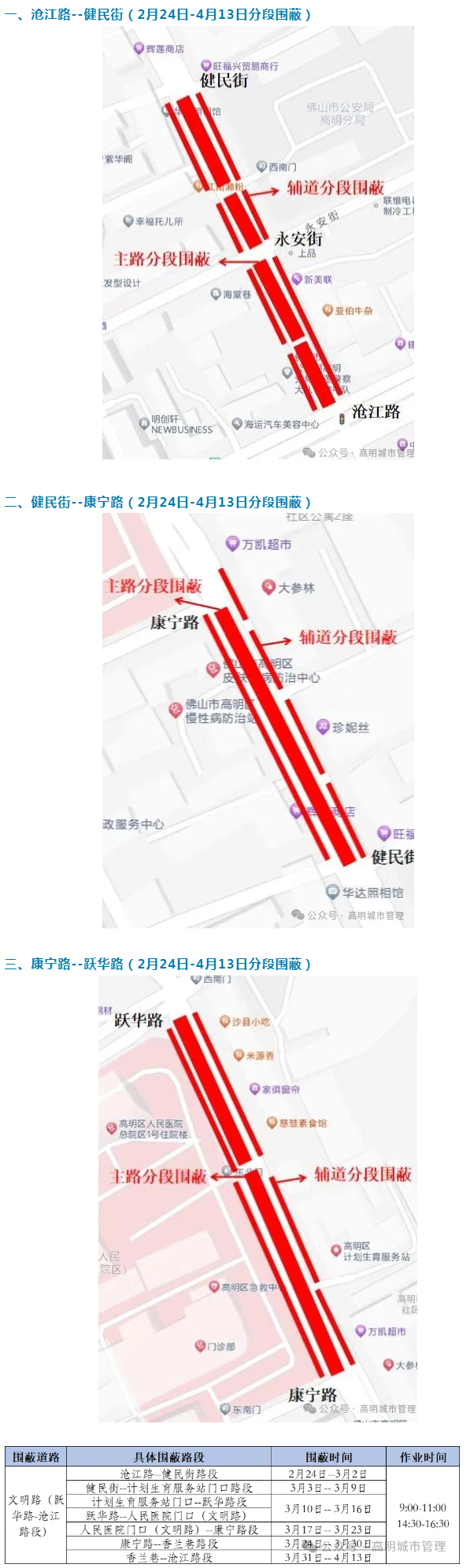 因文明路部分行道树生长过盛,枝叶茂密遮挡路灯,影响夜间行车及行人的安全,存在较大的安全隐患。区城管局将于2025年2月24日至2025年4月13日开展文明路(沧江路至跃华路段)绿化树木高空修剪作业(作业时间:9:00-11:00;14:30-16:30)。期间需要对文明路主路和部分辅道进行分段封闭(下图红色标注路段),请各位市民朋友注意绕行,因修剪作业给广大市民朋友带来不便,敬请谅解。