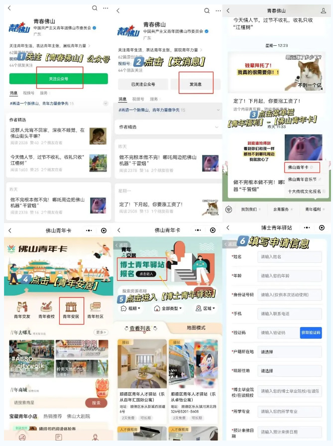 35岁以下的青年博士(前100名),需在来佛求职7日前关注【青春佛山】微信公众号,并通过公众号菜单栏点击进入【佛山青年卡】平台,点击【青年安居】服务板块,点击头图即可参与【博士青年驿站报名】,预约时需填写个人基本信息,并上传报名材料扫描件。
