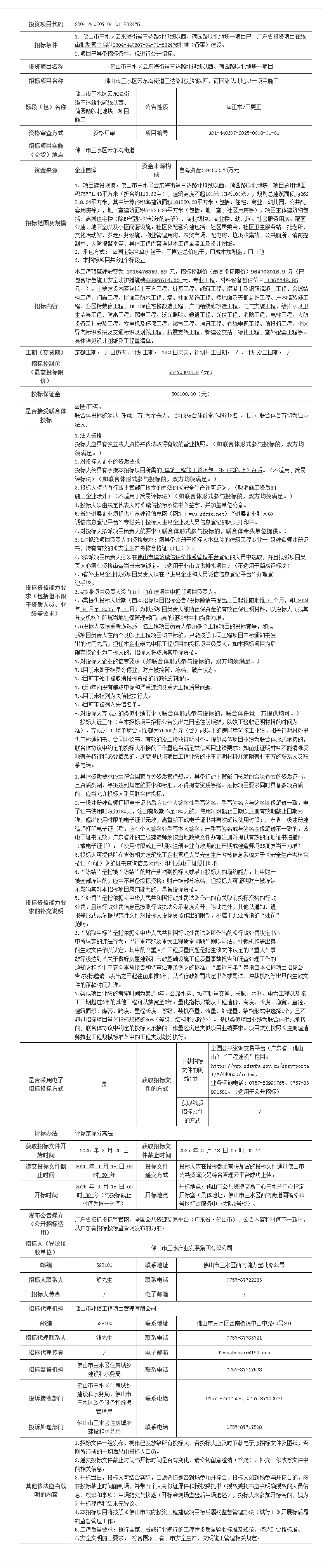 > 佛山市三水区云东海街道三达路北延线以西、荷园路以北地块一项目施工招标公告