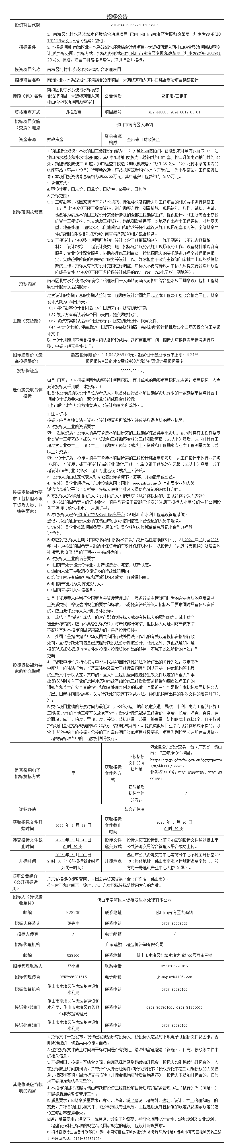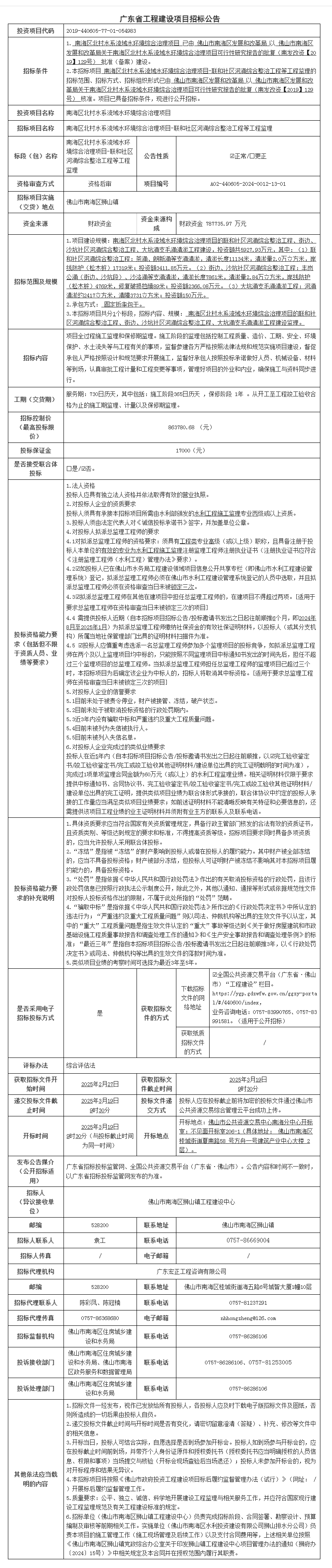 南海区北村水系流域水环境综合治理项目-联和社区河涌综合整治工程等工程监理招标公告