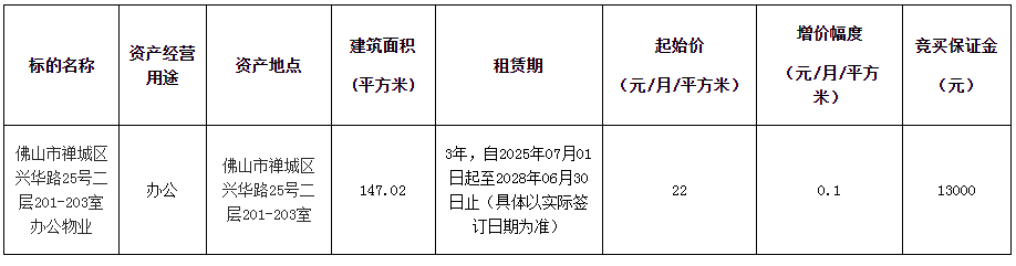 禅城区兴华路25号二层201-203室办公物业租赁公告