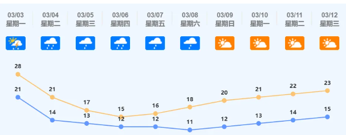 预计3日冷空气伴随切变南下,多云转雷阵雨,局部大雨,伴有强对流天气;4日受冷空气影响,仍有中雨,局部大雨。天气变化快,请注意适时增减衣物;我市即将进入强对流高发季节,注意防御局地雷电灾害和短时大风导致的厂房工棚、临时构筑物、户外广告牌、树木倒塌等灾害。