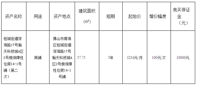 南海桂城街道深海路17号瀚天科技城A区2号楼保障性住房14-1号铺物业租赁项目