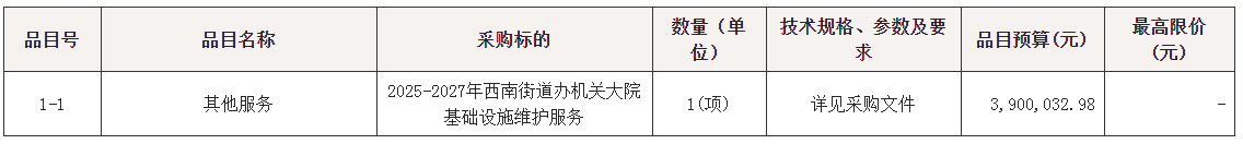 采购包1(2025-2027年西南街道办机关大院基础设施维护服务项目):