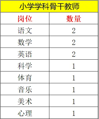 小学骨干教师:语文、数学、英语、体育、科学、信息技术等学科老师若干。