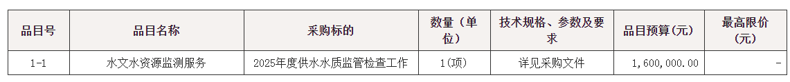2025年度供水水质监管检查工作采购项目的潜在供应商应在广东省政府采购网https://gdgpo.czt.gd.gov.cn/获取采购文件,并于 2025年03月17日 09时00分 (北京时间)前提交响应文件。