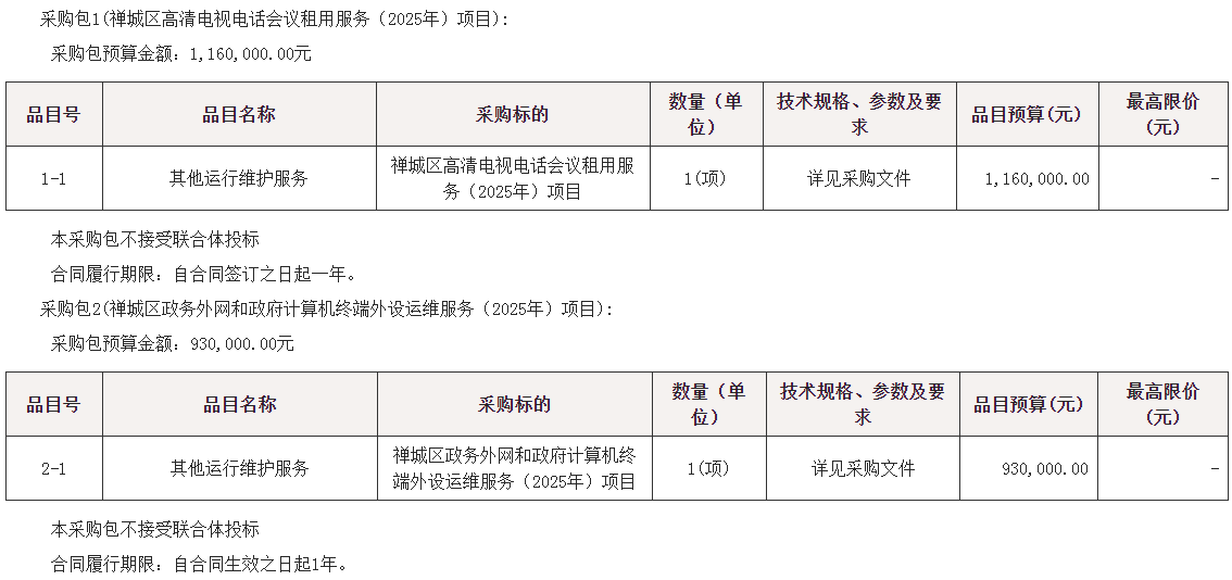 项目名称:禅城区政务外网运维和电视电话会议租用服务(2025年)项目