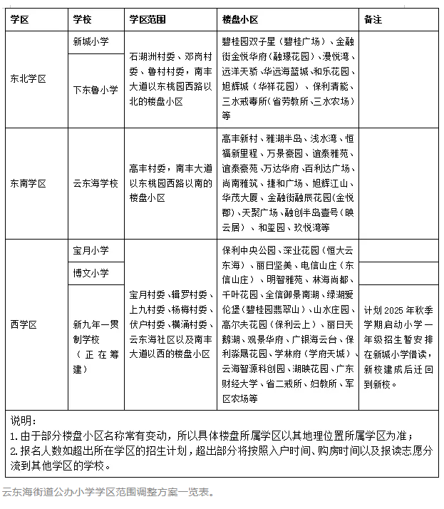 3月10日,《云东海街道新建学校学区范围划定及下东鲁小学学区范围调整方案》正式发布,学校选址三水区映达南路以北,映达路以西,映湖路以南地块,规划建设小学部42个班、中学部27个班。学校将于2025年9月启动一年级招生工作。