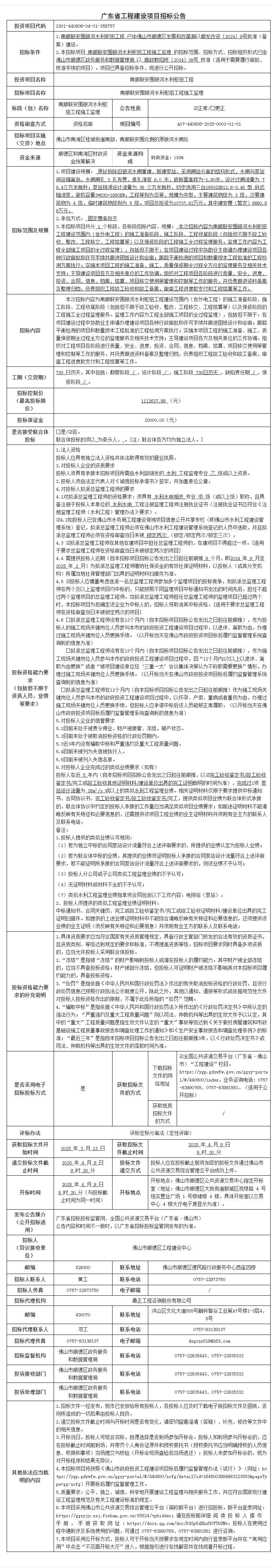 > 南顺联安围银河水利枢纽工程施工监理招标公告