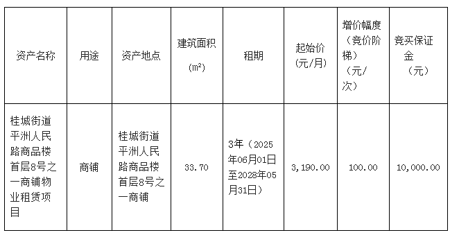 南海桂城街道平洲永安中路3号首层商铺之一物业租赁项目