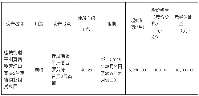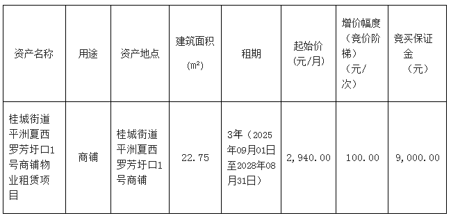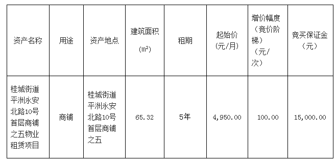 南海桂城街道平洲永安中路3号首层商铺之一物业租赁项目