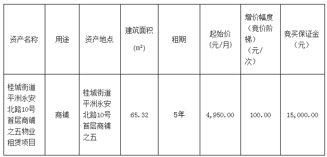 南海桂城街道平洲永安北路10号首层商铺之五物业租赁项目