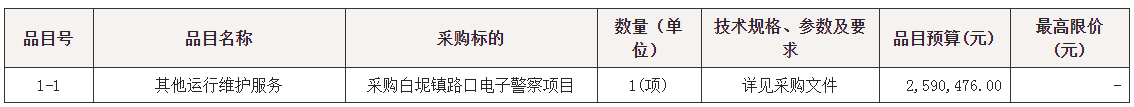 采购包1(采购白坭镇路口电子警察项目):